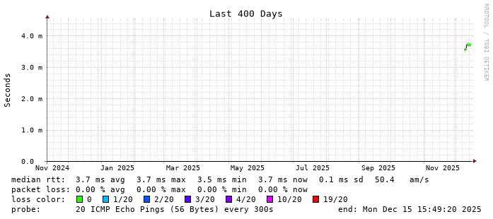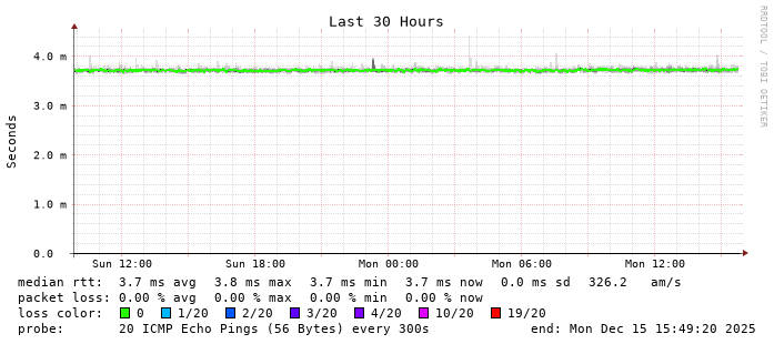 Running on SmokePing-2.6.11 by Tobi Oetiker and Niko Tyni